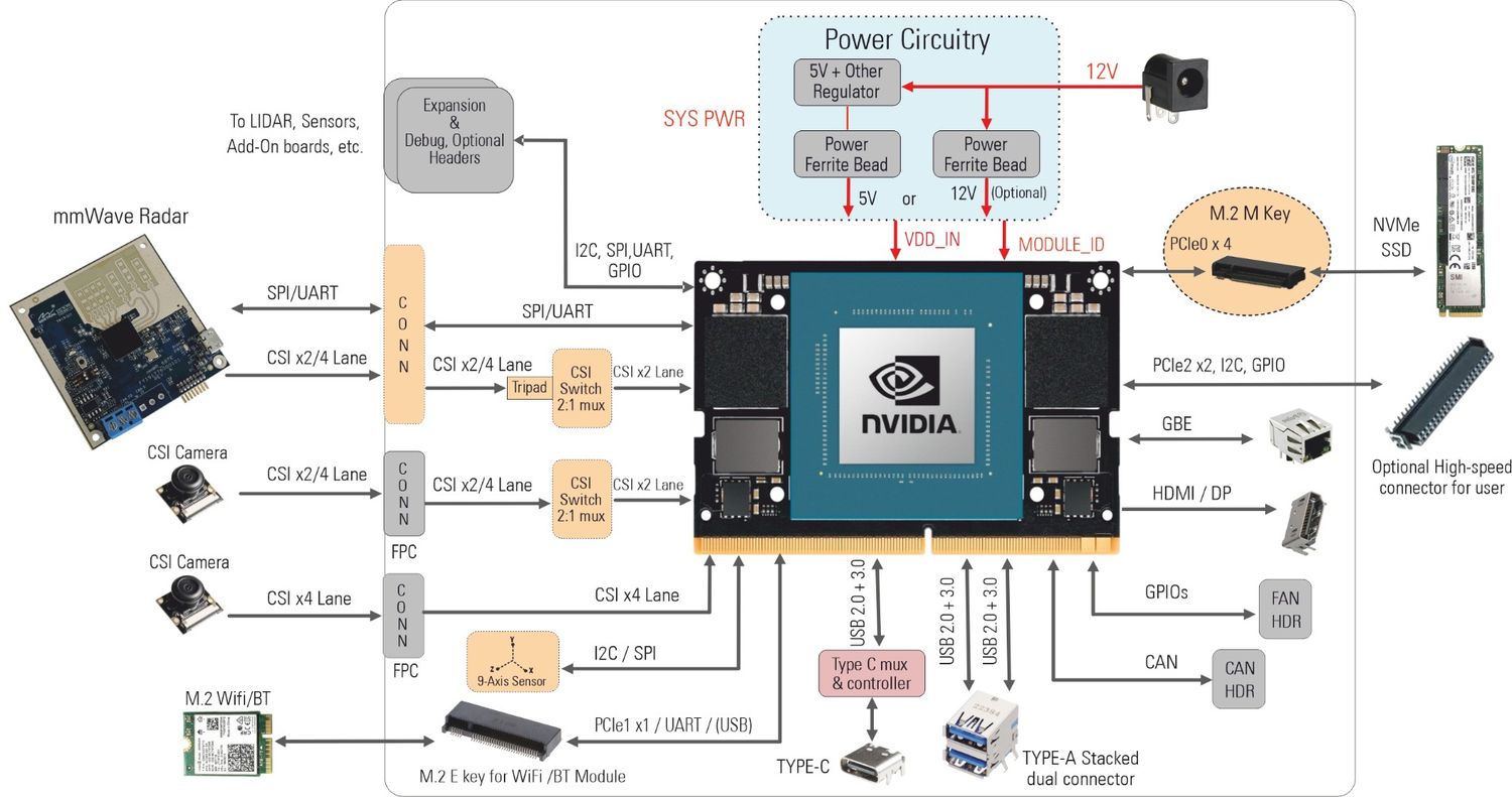Compatible with NVIDIA Orin SoMs, with options for custom carrier board configurations.